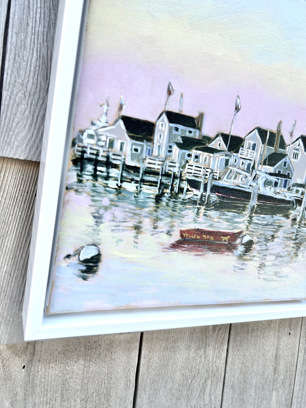 Nantucket’s best kept secret—sunrise! The early morning glow it creates at Old North Wharf is one of our favorite island views. An incredibly talented new artist to ACK 4170, Madison Standley. The flow of her brush, the textured paint and beautiful technique makes this piece quite special. By far, one of our favorite artists to date.