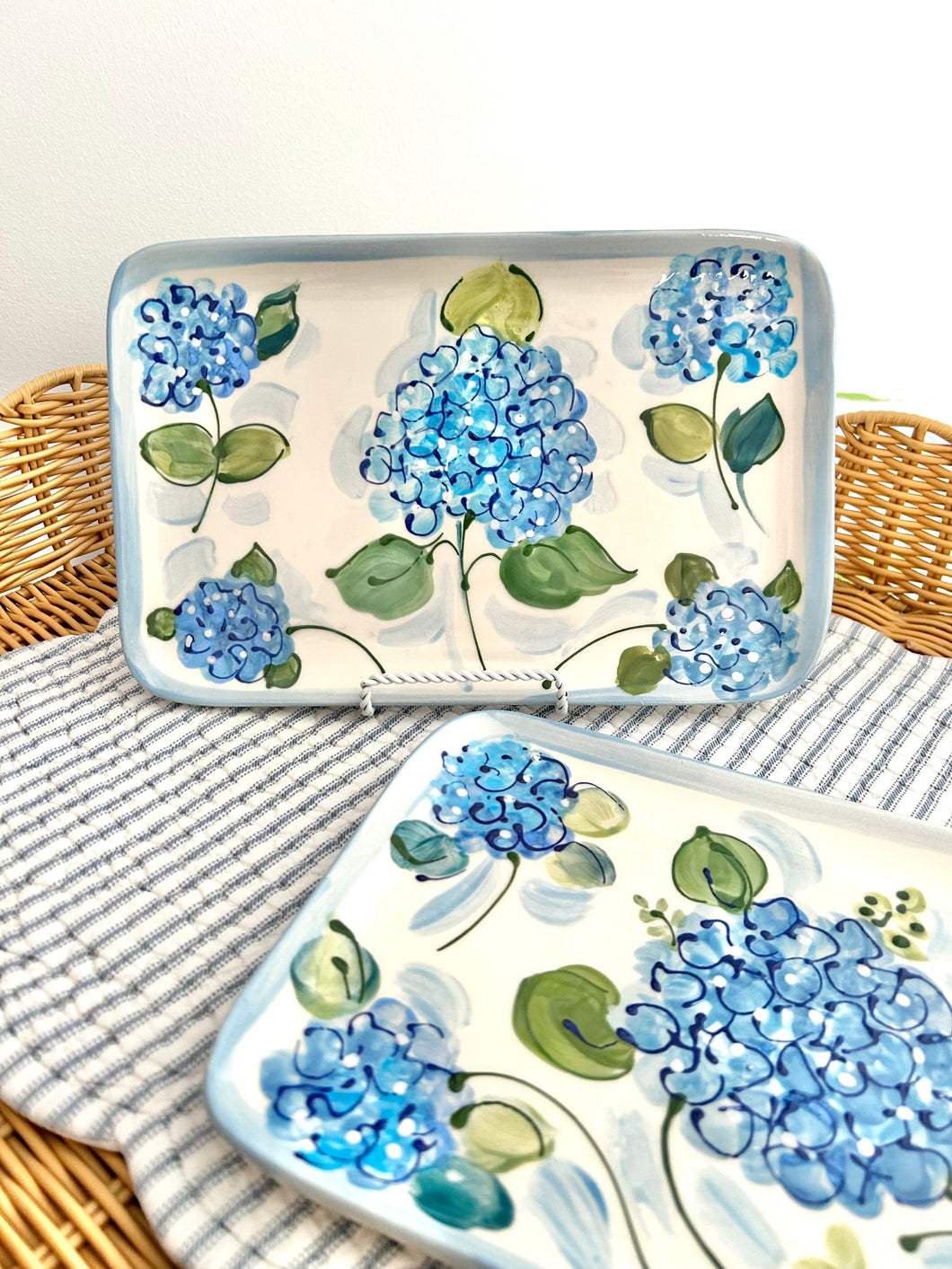 NEW! Blue Hydrangea Rectangular Platter Tray