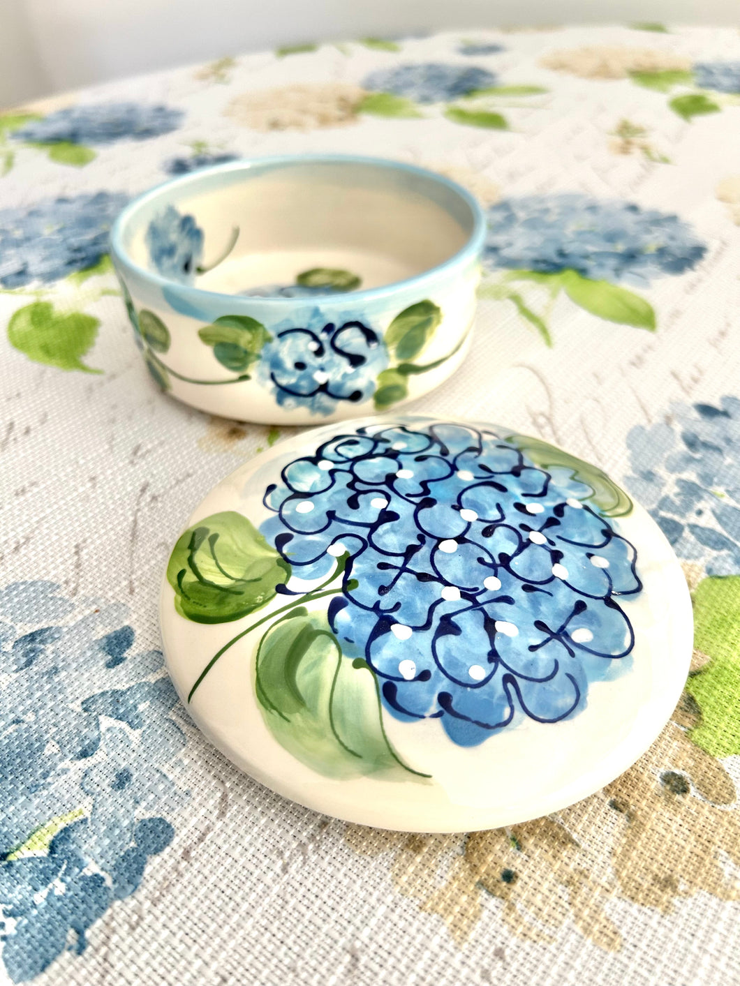 This lovely blue hydrangea trinket jewelry box is so sweet and special. Each an original, hand-painted by New England artist Frederique. Her work is absolutely stunning! A beautiful new addition to our collection.